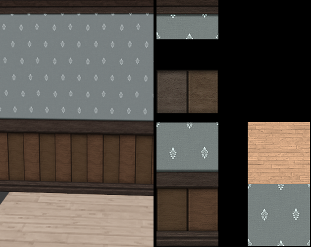 On the left is a single flat plane rather than a wall with extruding planks and trim. The texture atlas is on the right.
